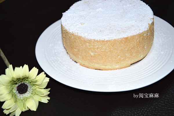 8、将模具取出后倒扣,待放凉后再将蛋糕脱模;