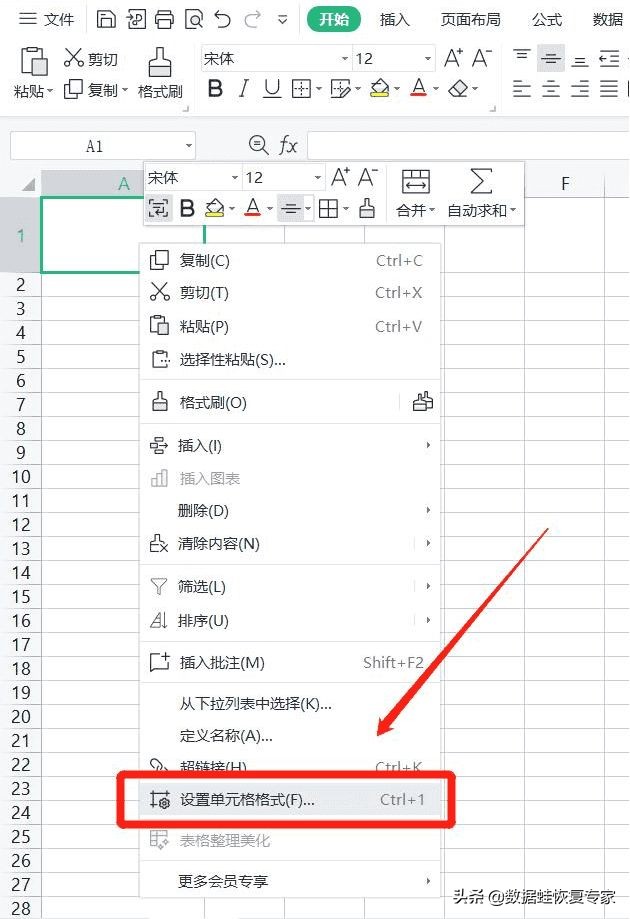 在一个空白单元格内点击鼠标右键,选择【设置单元格格式】。