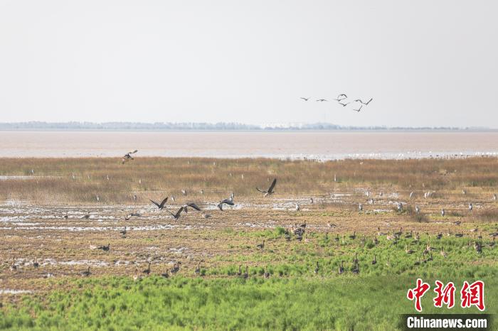 图为鄱阳湖国家级自然保护区核心区大湖池湿地内,众多越冬候鸟在此栖息。 刘力鑫 摄
