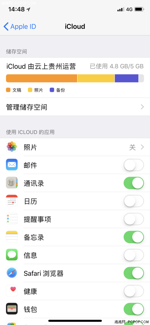 六、进入“添加账户”后选择第一个“icould”图标,然后输入苹果的ID。登入icould成功之后,点击打开进入icould菜单界面,在里面找到通讯录,然后将通讯录对应的开关打开,这时候就可以成功同步该苹果ID账号下的通讯录了。