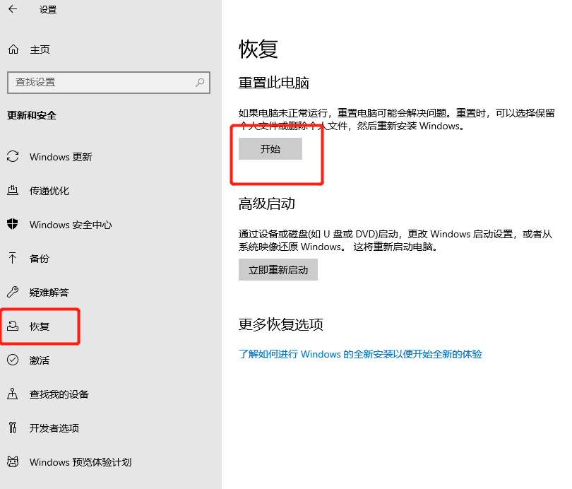 Windows系统带的恢复出厂设置这个功能,我劝你不要使用,一不小心有可能搞坏你的系统。
