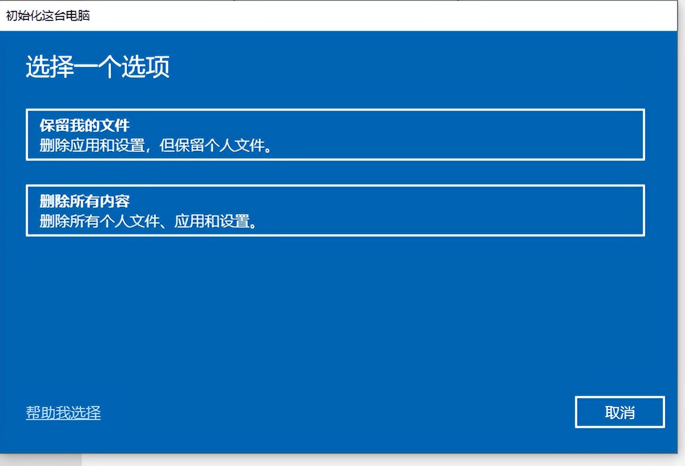 这里我选择删除所有内容,担心保留个人文件,具体还不清楚,这次就当重新安装系统。