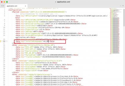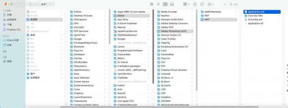 Mac版AE application.xml文件所在的路径位置为:/Library/Application Support/Adobe/After Effects/22.0/AMT,这里的22.0代表AE版本为2022,After Effects 2023版本为23.0