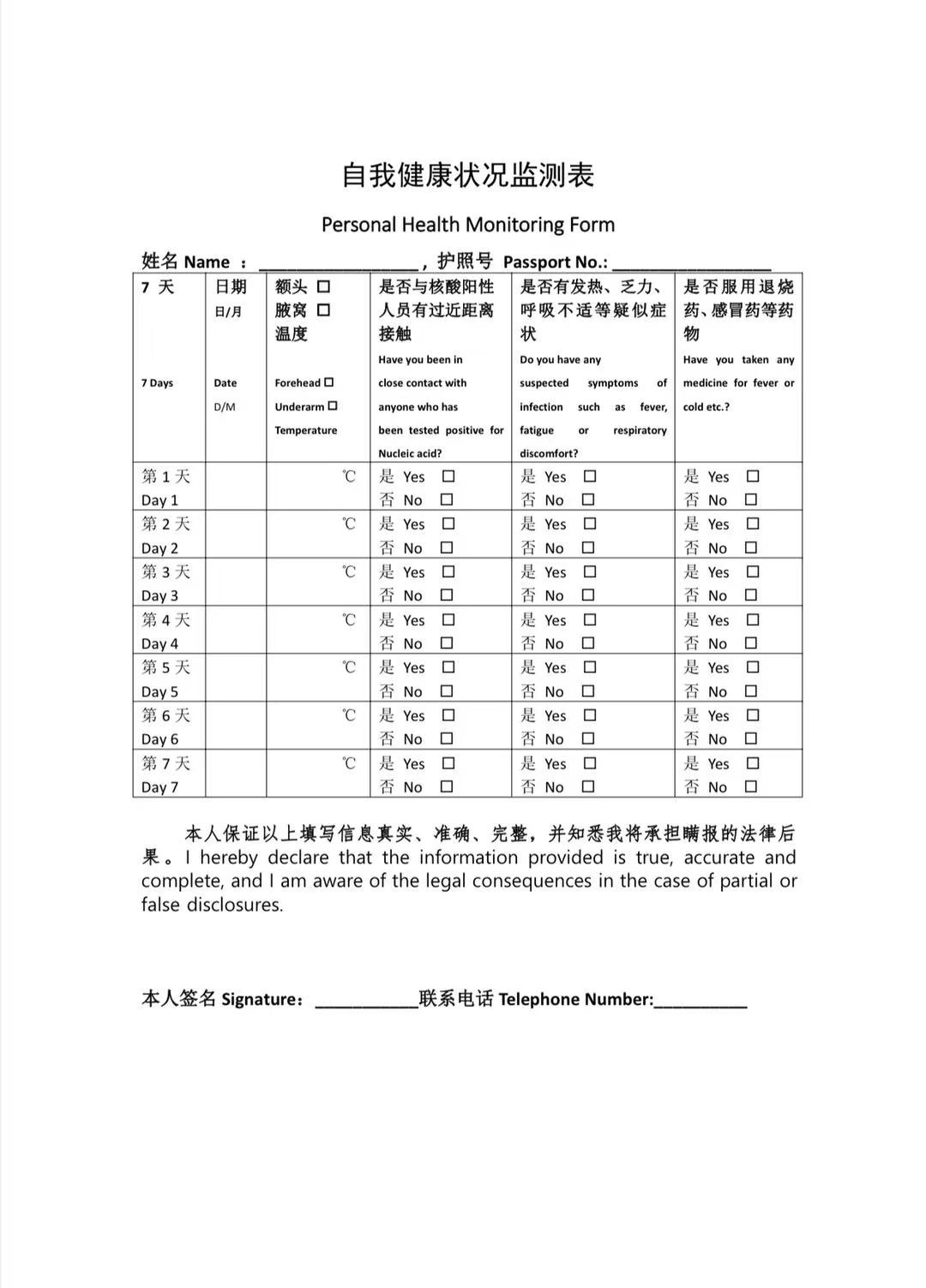 所有要从菲律宾回国的朋友,都是需要在出发日期前的第7天开始填写《自我健康状况检测表》的。(以下简称检测表)