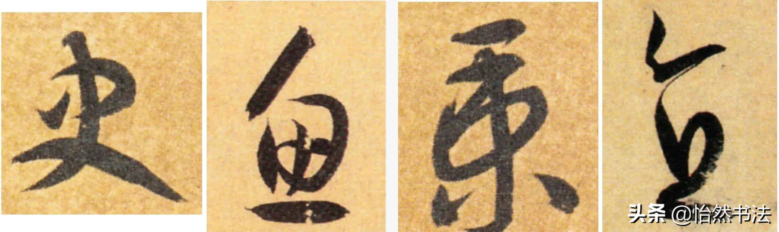 史,口部的左竖在写撇之前补上。鱼,撇+思(田一)。秉,撇+束(中间一横省了)。直,人+上。
