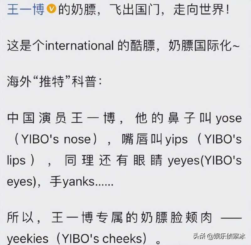 有超爱王一博的粉丝为他建立了词条和推特上面的相关释义,让王一博的奶膘走出国门,走向国际!