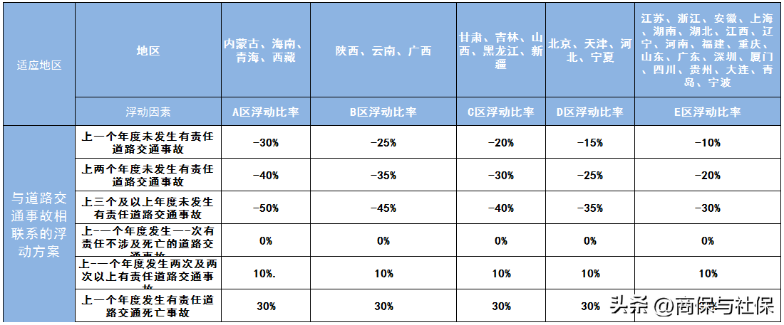 交强险各地折扣情况