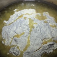 低筋面粉120克 猪油60克 火腿丁100克 洋葱半个 胡椒粉、盐少许