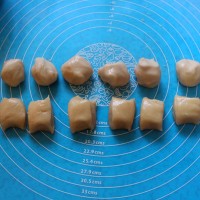 4. 将面团和油酥平均分成8份。