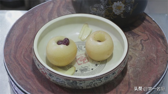 好了,这道酸甜可口的冰糖炖雪梨就做好了。