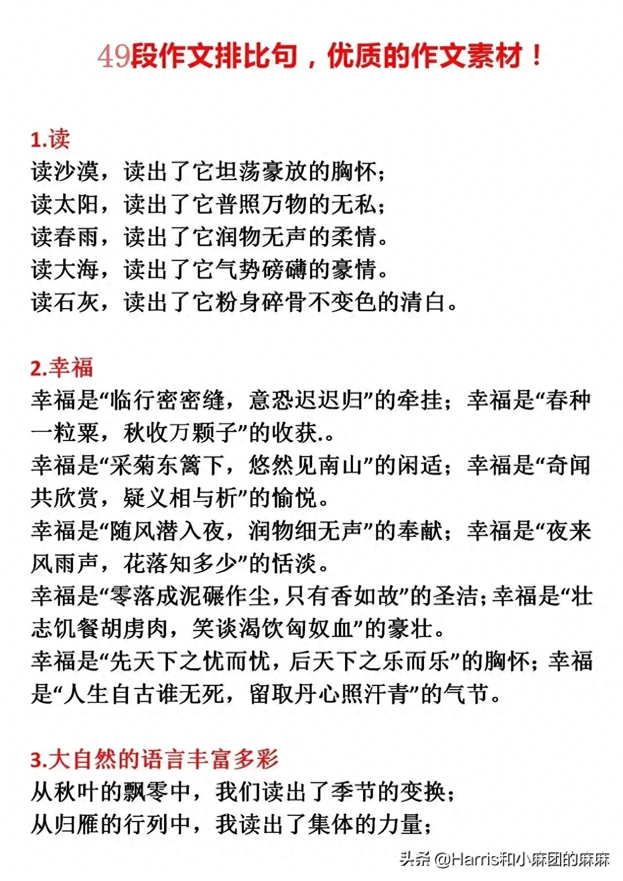 排比句的例子(49段优美排比句,优质作文素材,没事就让孩子抄抄写写,日积月