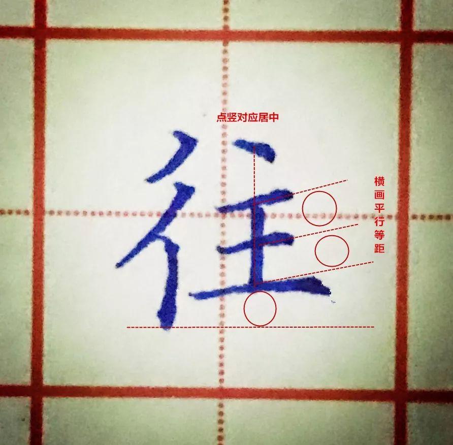 双人旁例字“往”书写示范: