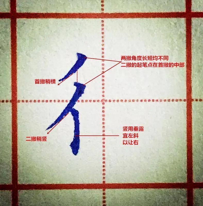 二撇的起笔点在首撇的中部;