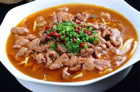 在里面加入一些肉汤后烧开,再将牛肉放进去,待肉外表发亮时,就可以盛出来了,此时在锅中烧一些辣椒油,将其浇淋在肉上就可以了。
