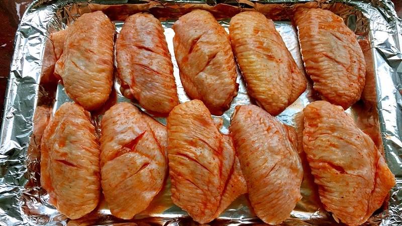 将鸡翅反复清洗,沥干水,用牙签在表面扎小孔,再将剁碎的姜蒜与蜂蜜一起调和成调料,均匀涂抹在鸡翅表面。然后用锡纸包好鸡翅,刷上一层蜂蜜和油,放进微波炉中,先加热5分钟,再翻转过来加热5分钟,一共耗时10分钟。