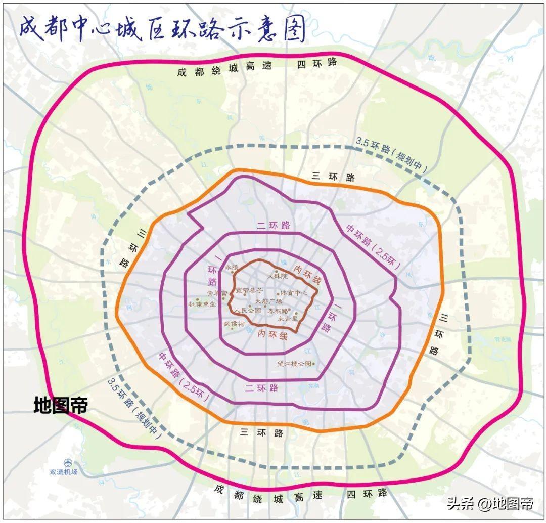 成都平原的核心成都市,这是一座以环形道路为交通主干网的城市。成都的公路大概有八条环线,包括内环线、一环路、二环路、2.5环路、三环路,四环路、五环路、六环路、七环路。