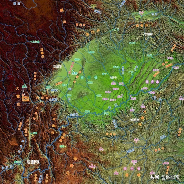北面是秦巴山地的米仓山、大巴山,东面是巫山、武陵山,南面是大娄山、乌蒙山、大凉山,西面是川西高原的邛崃山、大雪山等。