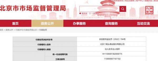 北京二锅头酒业股份有限公司因虚假宣传被罚。