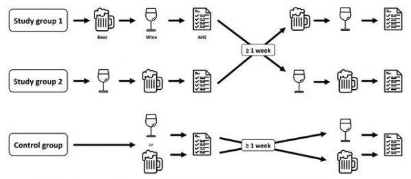 这项研究的巨大优势在于其交叉设计:一周之后,三组参与者转为相反的饮酒顺序, 这样,这些小组不仅相互比较,而且每个参与者也是他们自己的对照。