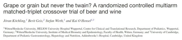 这项来自德国的科研人员的研究,以Grape or grain but never the twain? A randomized controlled multiarm matched-triplet crossover trial of beer and wine为题发表在The American Journal of Clinical Nutrition杂志。
