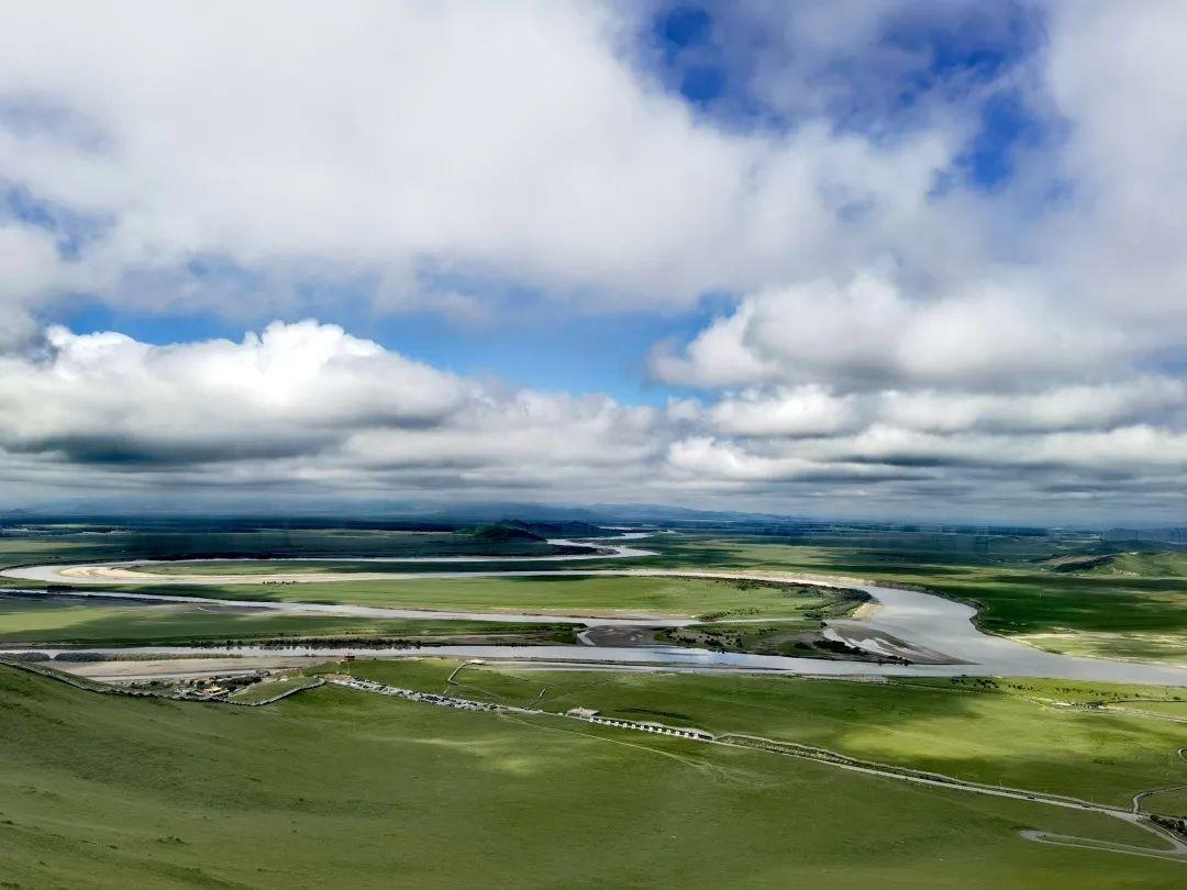 探秘黄河环抱的草原,并不在路边匆忙打卡,而是乘梯登上山顶,站在最高草原之巅,一览黄河围绕草原的壮阔全景。