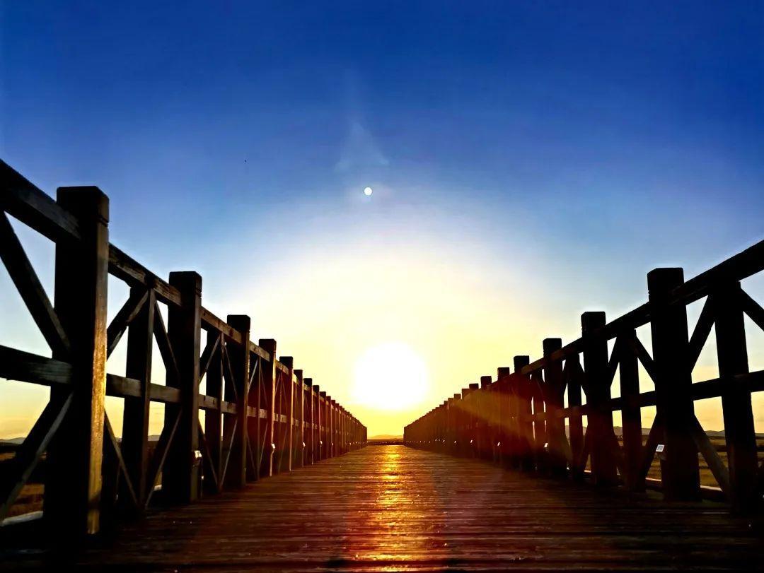 S型的黄河在夕阳下泛着红色的粼光,待太阳落入地平线后,便是漫天红霞,这一瞬间既浪漫又温柔。