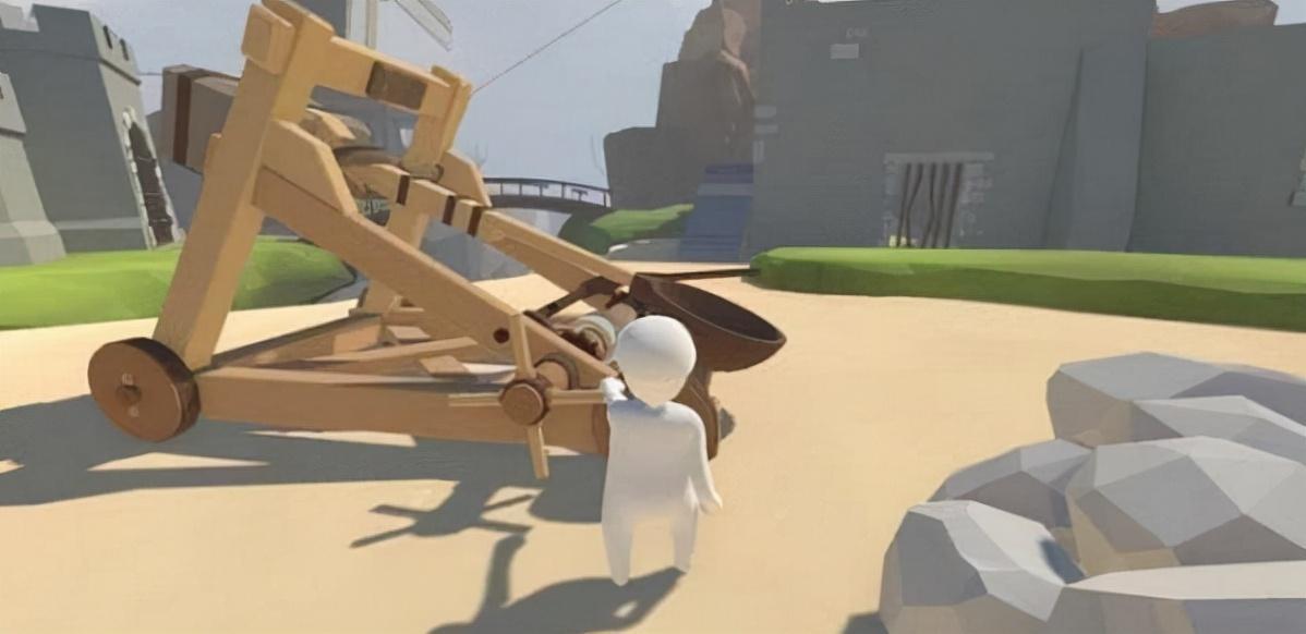 投石机将Bob弹飞,直接落入城堡。