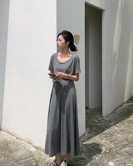 这款衣服看上去就很居家很舒服。为什么衣柜里的衣服那么多,小仙女们还是觉得没有衣服穿呢,这大概是因为不会搭配出现的选择困难症,这时候,你只要一身套装就可以解决这些问题了。上身是一件简单的圆领t恤,圆领的设计很好的修饰脸型,较为宽松的版型对身材也很友好,无论你是什么身材都装的下去哦~下身是一件A字版型的长裙,松紧抽绳的腰带,不管你是多粗的腰都可以自行收缩,非常方便哦。衣服整体垂感很好也很舒适居家,这样的一套搭配既简单又省心。汉服连衣裙