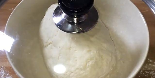 2)边倒温水边和面,把面揉光滑成面团之后盖上盖子醒发30分钟。