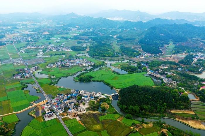 人民网共青城4月28日电 近日,航拍下的江西省共青城市泽泉乡花园村,青山、田园、流水与村庄交相辉映,一派生态秀美的山村画卷。