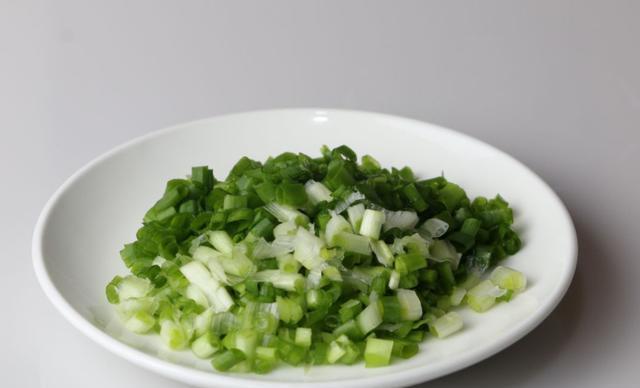煮南瓜的间隙,我们可以做一些其它辅料工作。取香葱若干,切成葱末,然后放入十三香、食盐、生抽、酱油、醋、香油,腌制葱花。