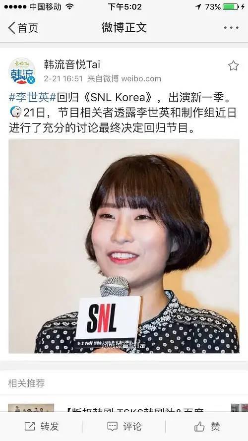 在那之后,她也在《周六夜现场韩国版(SNL)》中作为幻想剧情中的演员