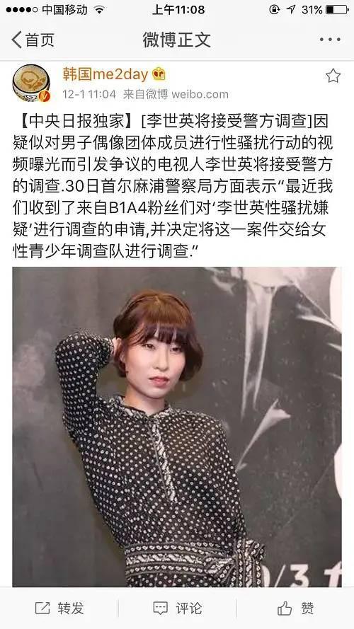 导火索是她在后台对参加节目的艺人B1A4做出了以下的动作...