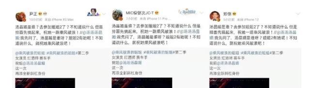 当时《浪姐2》在宣传期时,汤晶媚就获得了郑恺、尹正、佟大为、尹正等男明星的支持。