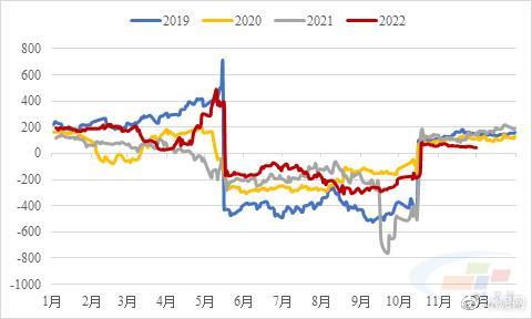 从期限结构来看,螺纹钢期货10合约贴水05合约的幅度收窄,价差由月初的68元/吨降至43元/吨,11月螺纹钢期货远月贴水的程度仍保持在近几年最低水平。