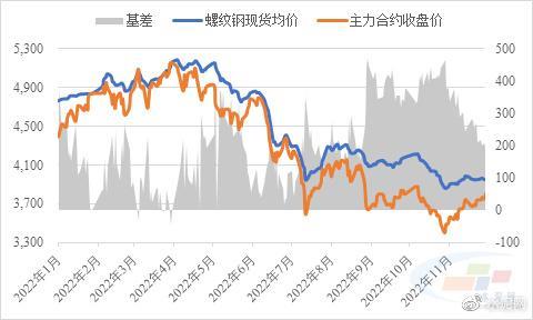 11月份,国内房地产支持政策频出,加之下旬开始各地陆续优化防疫管控措施,政策预期相较于前期出现明显改善,加之外部加息幅度放缓,宏观层面利好增多。同时,在原料成本上升的支撑下,螺纹钢期现货价格出现修复,尤其是明年旺季的价格预期明显走强,期货价格涨幅高于现货,主力合约基差持续收窄。