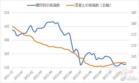 图1:国内螺纹钢和混凝土价格指数走势(点)