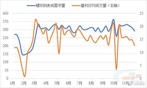 图4:螺纹钢表观需求量以及日均成交情况(万吨)