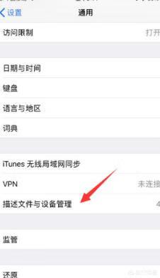 3、在描述文件和设备管理中,可以看到企业应用,点击企业应用打开。