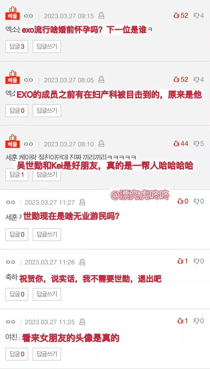 3月27日,有关韩国男团成员女友未婚先孕一事的帖子引起韩网热议。帖子中网友声称在妇产科医院有遇见未婚婚前女友怀孕的男爱豆,虽然未明确指出其姓名,但随后却有人直指吴世勋。