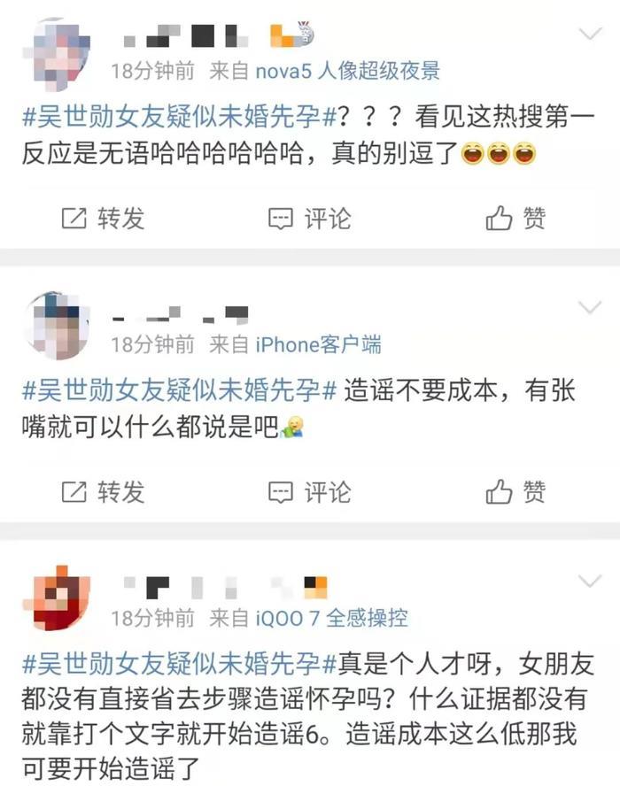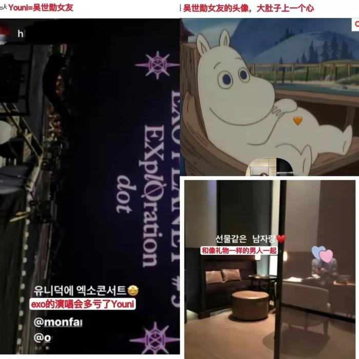 吴世勋有圈外女友,女友发布疑似吴世勋的图片,并配文“和像礼物一样的男人在一起。”;吴世勋女友近期更换头像,新头像的玩偶大肚子上有一颗心;EXO的成员之前有在妇产科被目击到;