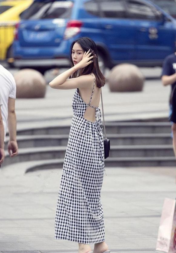 这位小姐姐身穿黑白相间的裙子,小清新气质更显时尚同时显瘦效果更棒,让身材看起来更纤细,完美的展现了女神的气质。