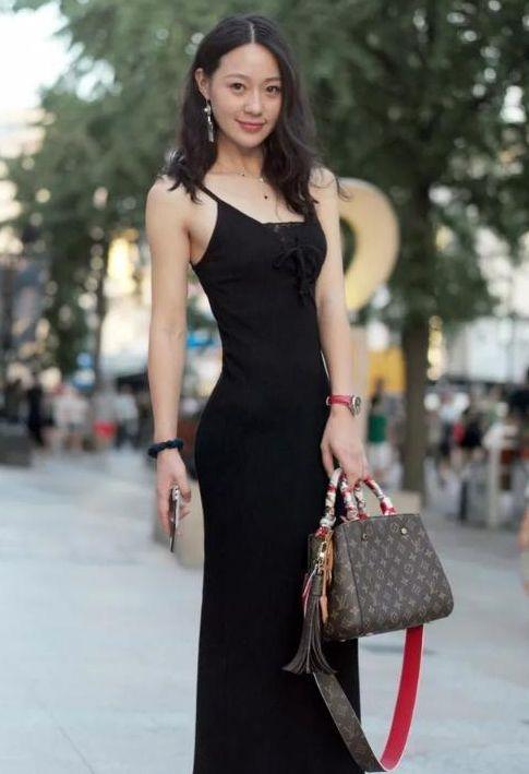 黑色吊带连衣裙,尽显凹凸曲线,身材一级棒!【街拍:物以类聚人以群分,美女身边一定是美女,图4美女跟我回家】