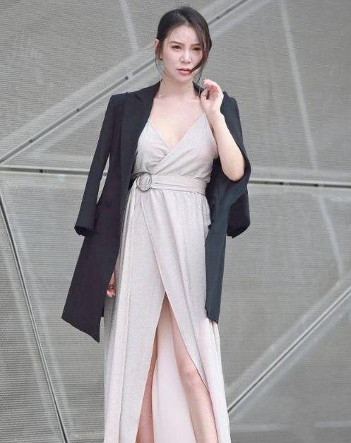 粉丝长裙搭配黑色西装外套,尽显霸气女人完美气质!【街拍:物以类聚人以群分,美女身边一定是美女,图4美女跟我回家】