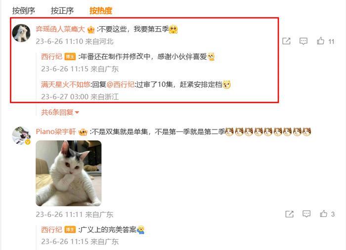 从评论区中,我们就能够看到官微的答案,从而了解到第五季的制作进度。官微明确表示,第五季年番还在制作并修改之中,让大家敬请期待。看得出来,官方对第五季年番甚是重视,不但有条不紊的加快制作,还愿花费人力物力财力,重新修改细节,这简直是诚意满满,正所谓好饭不怕晚,西行纪年番值得期待一波。