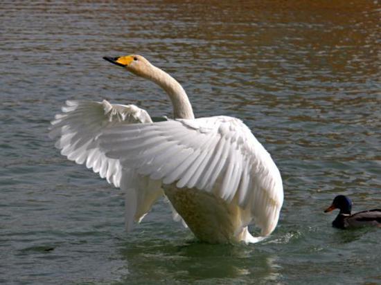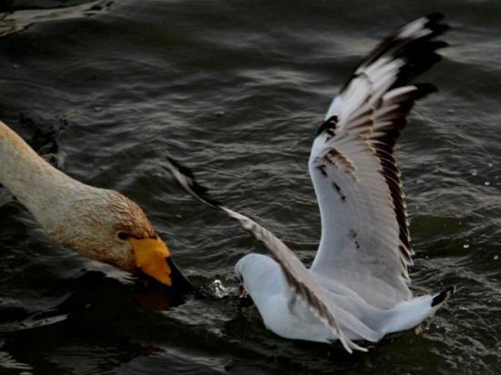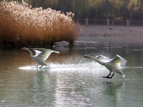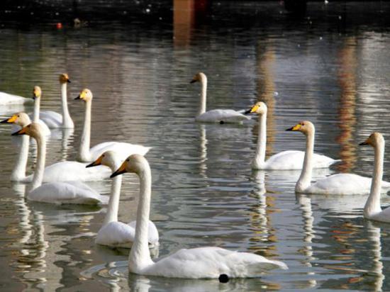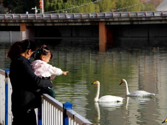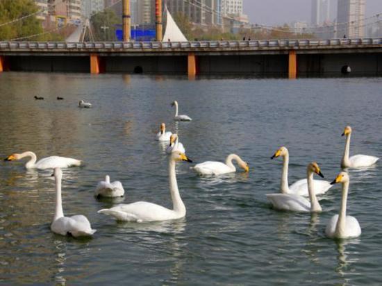 连续第18年来库尔勒越冬的野生天鹅已经把库尔勒市当作了它们的第二故乡。市民也早已经习惯了每年冬天有天鹅的陪伴,每天都有不少爱心市民带着馕、馍馍等食物给天鹅投食,天鹅、野鸭、银鸥等水鸟毫无防备地靠近市民,抢食市民投喂的食物。“今天趁着天气好,阳光充足,来看看这些‘老朋友们’。”市民张雨林说。