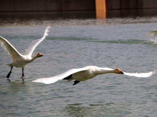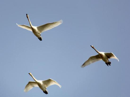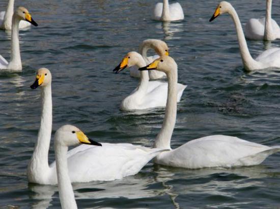 近三百余只天鹅飞抵梨城惬意越冬