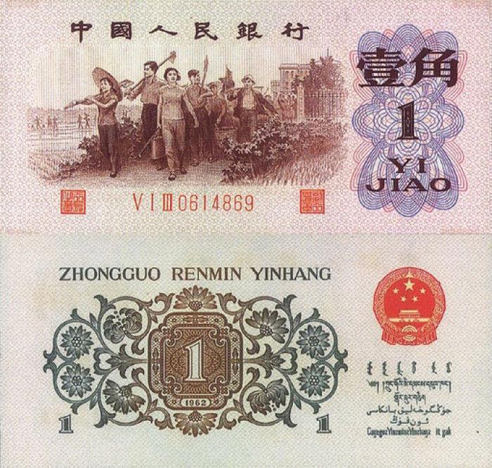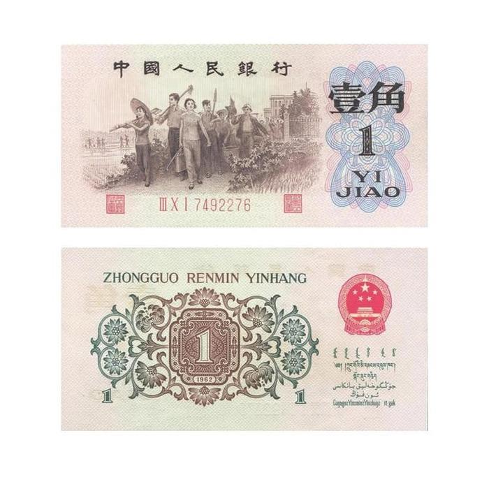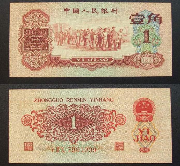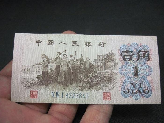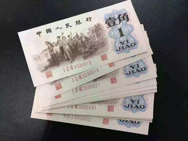 下面咱们来看第一个枣红一角,枣红一角被称为红一角,也是第三版人民币中最早发行的一角纸币,在券面的图案中的人物是从左向右前进,这种情况在当年左右路线非常激烈的年代里面犯了严重的右倾错误,不久后该券就被全部严苛的回收销毁,存世量非常少,目前全品相的价格在5000元左右。