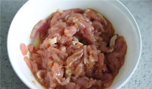 肉用水淀粉和1-2g盐拌匀,拌好后加入生清油调匀,这样简单将肉处理下可以锁住水分保持嫩度,也可以适当减少肉丝翻炒的时候粘连的程度。淀粉最好选择红薯淀粉玉米淀粉也可以。