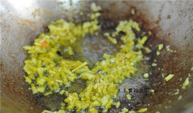另起油锅,中小火爆香姜蒜泡椒末,直到油色红亮即可。